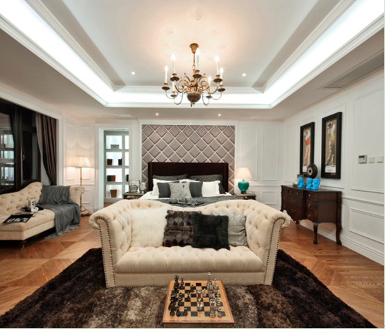 白色調(diào)和深啡色調(diào)為大對比色彩,加以簡約形態(tài)的暖色家具為中間色來諧調(diào),營造一種高貴雅致對比的深度感的空間;將歐洲新古典風格演繹成一種優(yōu)雅的平衡姿態(tài),含蓄、考究的家居空間。