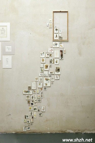 將從小到大的照片一點一點的向上貼,有沒有那種藤蔓纏繞的感覺呢?記錄自己生活的點點滴滴,腦海里清晰的呈現(xiàn)出生活的過程。當(dāng)中有個空的鏡框進行裝飾,又能增添了不少藝術(shù)的味道。