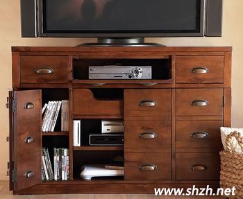 以前的老式衣柜做工都非常的精致細(xì)膩,華麗的雕花很是漂亮,厚重的實(shí)木家具也彰顯了主人的品位,只需要小小改造就是一個(gè)造型別致的電視柜了?,F(xiàn)在的電視柜也越來(lái)越流行帶門(mén)的款式,這樣更有利于電視的防塵;衣柜本身就是容量很大的家具,所以可以輕松放下一個(gè)液晶電視,。只要把上面幾層的隔板拆了,再在衣柜后面的隔板上打個(gè)孔方便電視電線通過(guò)即可。原本的抽屜更是可以成為DVD等放映設(shè)備的的安置處,或者用來(lái)收納各種影碟和錄影帶。