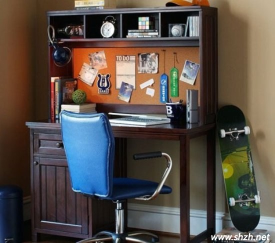同樣是采用木質(zhì)打造的書桌,這款收納性非常強大。分隔清晰明了,書籍的擺放條理清晰,取放非常便捷,這也為學(xué)習(xí)時找書本帶來了方便??臻g收納非常充足,除了書本的擺放之外,還可以收納小男孩喜歡收藏的玩物或者玩具之類的物品。男孩味十足。