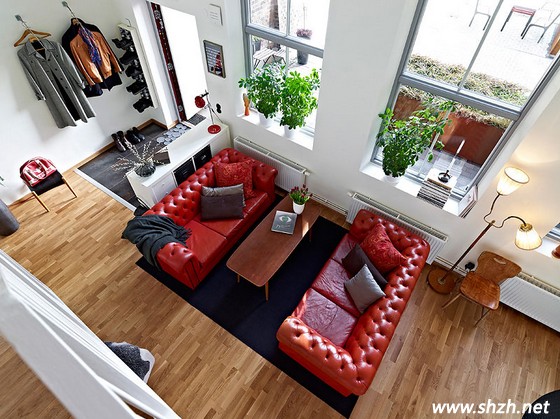 其實(shí)有時候就是這樣,換個不同的角度,在不同的空間,你才可以領(lǐng)略到同一個區(qū)域卻能帶來不一樣的效果。從上往下俯瞰這客廳區(qū)域,才發(fā)現(xiàn)是那樣的大氣凌然,長方形的白色客廳區(qū)域,紅色的皮質(zhì)沙發(fā)依然成為居室內(nèi)的一大亮點(diǎn),而實(shí)木地板的鋪設(shè),層次感非常強(qiáng)烈。坐落的臺燈,帶來幾分俏皮和可愛,長方形的茶幾,配合著沙發(fā)的形狀,看起來是那樣的精巧雅致。而綠植依然是永遠(yuǎn)不變的話題,自然而清新。
