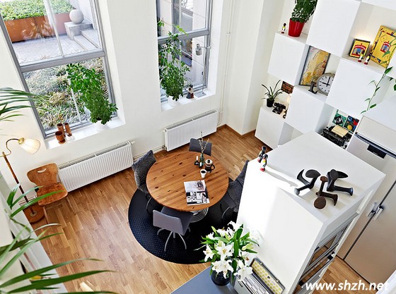 有時候,正面看不一定是最好看的。俯瞰的樂趣也許只有親身體驗才能知曉其中的韻味。實(shí)木的餐桌與實(shí)木地板的協(xié)調(diào)搭配,而圓形的地毯與餐椅也展示出了和諧的魅力。櫥柜上的裝飾品是那樣的富有創(chuàng)意靈動性,給整個空間增添了幾分俏皮可愛的氣氛。綠植當(dāng)然也不服輸,爭鋒斗艷,每個角落都有它們的身影,綠植帶給我們不僅是自然的美,還讓能凈化室內(nèi)的空氣,在室內(nèi)也能呼吸到與室外一樣的新鮮空氣,非常的愜意。