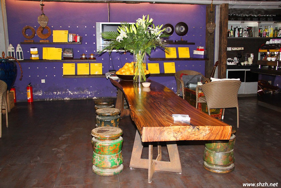 而正因?yàn)榭Х瑞^擁有來(lái)自不同地區(qū)的藝術(shù)珍藏品,使得整個(gè)區(qū)域變得純凈而自然,簡(jiǎn)潔而靈動(dòng)。細(xì)看這張自然的實(shí)木桌椅,原木的桌子,木質(zhì)紋理清晰可見(jiàn),歷史的輪回,讓這張桌子變得特別的有厚重感。幾張小巧的圓凳,精致而優(yōu)雅,不同的色彩給予了它們不同的異域風(fēng)情。在這里,會(huì)讓人的心情變得更加的美好、更加的開(kāi)朗。