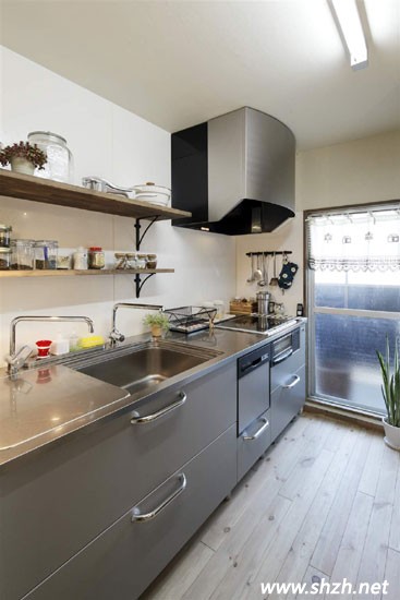 不銹鋼的整體櫥柜簡(jiǎn)潔明亮,而且大的抽屜櫥柜擁有強(qiáng)大的收納功能,而上面用木板搭制成收納區(qū)域,可以放各種調(diào)味品、餐具和廚具,非常方便拿取,有利于廚房區(qū)域的保潔。