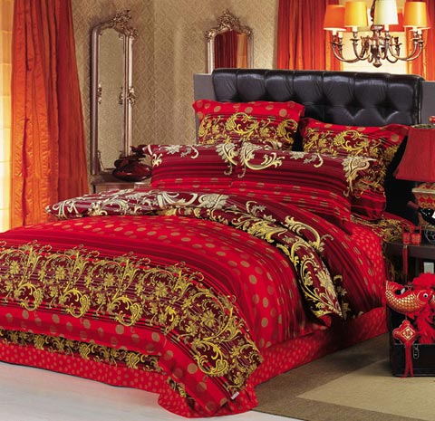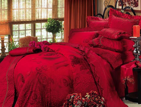 概要: 一般來(lái)說(shuō),中國(guó)人結(jié)婚一般都偏愛(ài)紅色,床上用品自然也不例外,選用紅色就是想圖個(gè)吉利熱鬧、讓大喜的日子能更添幾分喜慶?! ≡诨鸺t的玫瑰園中,幸福的新人在舉行盛大的婚禮,此時(shí),比愛(ài)情還要珍貴的就是幸福的時(shí)光。給人感覺(jué)就是一床幸福的顏色,所帶來(lái)的,也是那幸福的時(shí)光。