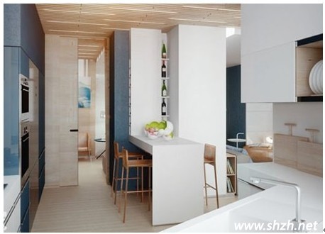 廚房空間并不可能都是中規(guī)中矩的形狀,也許由于整體房型的特殊性,需要將廚房變的曲曲折折,也可能廚房和其他空間共處一室,那么此時就需要想想如何才能將不規(guī)則房型進行充分利用,怎樣才能讓設計的有效性達到最高級別。