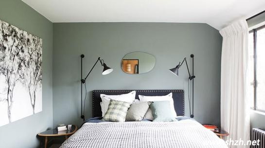 臥室是休息的重要場(chǎng)所,人的一天1/3的時(shí)間是在床上度過的,因此,臥室一定要以溫馨舒適,能有助于人的睡眠為主。這款設(shè)計(jì)就特別的簡(jiǎn)單溫馨。淡綠色;與白色相搭配就是挺不錯(cuò)的視覺效果。而且映入眼簾的床頭那一面不規(guī)則鏡子也是很有趣味的,裝飾效果非常好。