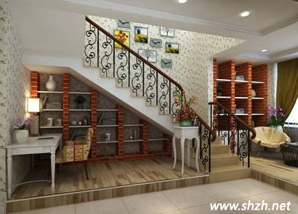 田園風(fēng)格樓梯設(shè)計(jì)是現(xiàn)在的一大主流 大多的田園風(fēng)格的樓梯采用的是鐵藝和實(shí)木木板的結(jié)合,而旋轉(zhuǎn)型鐵藝樓梯是最長見的一種,再搭配上小碎花的墻壁,瞬間就讓人一種進(jìn)去自然的感覺。