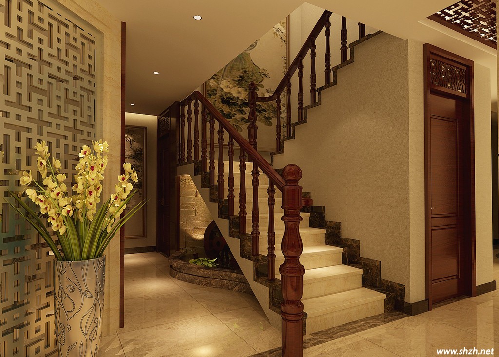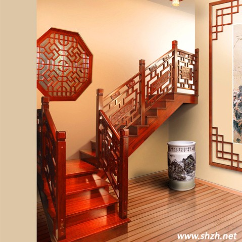 中式風(fēng)格裝修風(fēng)格能后贏得裝修市場(chǎng)的一塊蛋糕,中式風(fēng)格的樓梯設(shè)計(jì)功不可沒。當(dāng)下大多數(shù)的中式風(fēng)格樓梯均采用實(shí)木欄桿和實(shí)木踏板的搭配,再通過含有中國多特的元素如木雕藝術(shù)、鏤空圍欄。打造中式儒雅的浪漫。