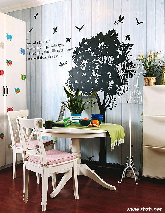 惟妙惟肖的紅實木質(zhì)地板,是最顯東南亞風(fēng)格的,保留原始本色。小戶型的我們想要更加突出東南亞風(fēng)情,只能把墻面和擺設(shè)發(fā)揮到最大用處,墻上栩栩如生的雨林繪畫展現(xiàn)大自然氣息,桌子上一盤棕櫚葉盆栽處處讓你融入東南亞風(fēng)情里面。