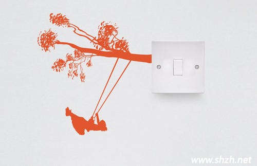 開(kāi)關(guān)里面躲了個(gè)老頭在看書,靠著的沙發(fā)一定很舒服,3D效果的開(kāi)光墻讓我們誤以為開(kāi)關(guān)是凸出來(lái)的。