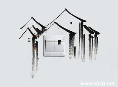 通過(guò)幾筆就將古代民屋融入開(kāi)關(guān)之上,把開(kāi)光當(dāng)作了屋子的窗口,打開(kāi)了開(kāi)關(guān)如同打開(kāi)了窗戶。