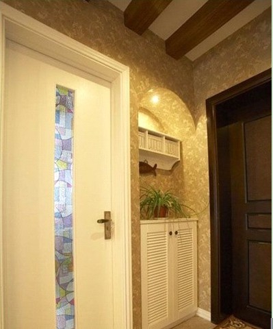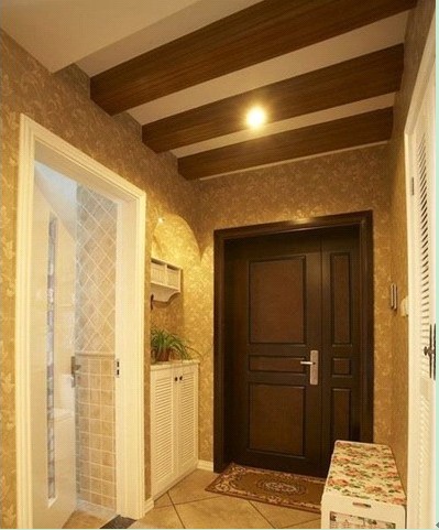 進(jìn)門雪白的2扇百葉門成品鞋柜,上面的裝飾吊柜,拱形上的筒燈,大面積的墻紙鋪貼,進(jìn)門的木柱吊頂,經(jīng)典的美式復(fù)古風(fēng)!