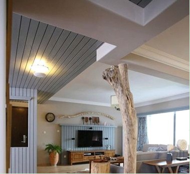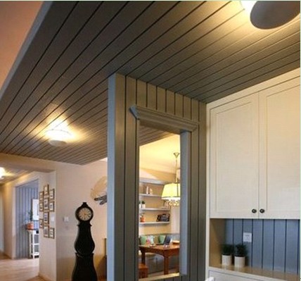 這張圖片詮釋的是電視背景墻!木質(zhì)板材抽縫在外刷油漆!美觀性比較的強!