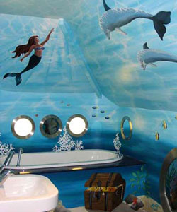 沐浴的時間也可以是如此的快樂,孩子現(xiàn)在能和海豚游泳、和美人魚嬉戲,而且在有主題的壁畫中到處濺濕。