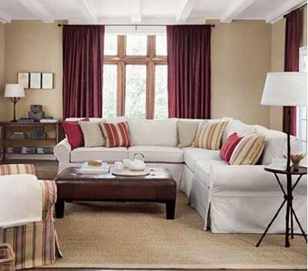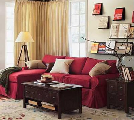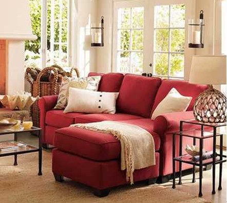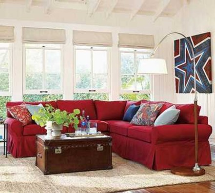 圖片是轉(zhuǎn)角組合沙發(fā),紅紅的的在整個空間里顯得格外出挑。