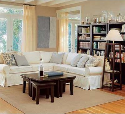 白色的布藝轉(zhuǎn)角沙發(fā),舒適又具有親和力,很受年輕時尚一族的青睞。