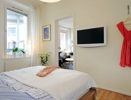 北歐風(fēng)格白色是最主要的色采,這也造就了一個色彩亮點。白色的家居設(shè)計有個最大的優(yōu)點:可以隨意擺設(shè)裝飾品,色彩也不用注重,可以隨意發(fā)揮。正對床的墻面上自然是裝個液晶掛壁式的電視機,給你一天忙碌的生活畫上一個完美的句號。如果你是一個懂藝術(shù)或欣賞藝術(shù)的人,也可以在墻上掛上一幅畫。白色的窗臺擺上兩盆小盆栽,地上擺放一盆落地式的盆栽都能體現(xiàn)出對家的熱愛與需求。