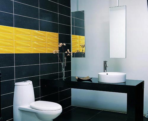深色在衛(wèi)浴設(shè)計(jì)中的應(yīng)用相對(duì)比較廣泛,冷色相對(duì)可以帶給人們一種清爽之感。但是單純冷色的應(yīng)用,又會(huì)略顯沉重,案例中由黃色馬賽克拼接而成的主題墻,則打破了這種沉默,照亮了整個(gè)浴室。