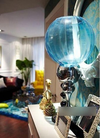 沙發(fā)邊上的臺燈也很不錯(cuò),下面是透明玻璃的,里邊還可以裝一些自己喜歡的東西做裝飾。