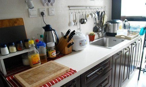 這是廚房全貌圖,因?yàn)樵挤啃捅容^細(xì)長(zhǎng),也沒什么改動(dòng)。