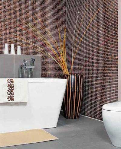 概要: 與客廳一樣,浴室也需要有一面獨(dú)有的“主題墻”。主題墻的魅力在于,它的色彩和廓形能為整體衛(wèi)浴增添醒目的時(shí)尚感。整合了浴室的所有色彩精華:浴室家具、面盆、龍頭、浴室鏡、瓷磚、馬賽克……,創(chuàng)造了衛(wèi)浴中極富個(gè)性的視覺核心,以及無限快樂的主題衛(wèi)浴生活。 棕色給人一種沉穩(wěn)、高貴之感,大面積的棕色馬賽克和造型硬朗的浴具搭配,營(yíng)造出平穩(wěn)卻不乏生動(dòng)的空間。