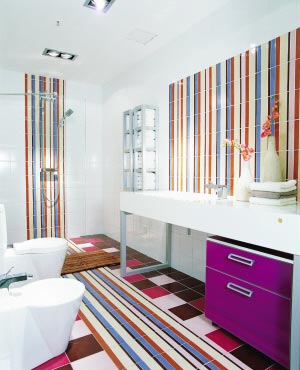 對(duì)于一些人來說,如果僅僅是一面墻,一定覺得無聊至極。即便是藍(lán)色或者黃色,時(shí)間久了依然會(huì)感覺厭倦。連落地鏡和拉絲鋁浴室家具都閃著光芒躍躍欲試,那么,為什么不用最大膽的POP花色瓷磚拼貼整面墻壁沖擊視覺神經(jīng)呢?