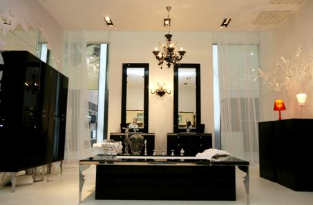 這一系列采用白、黑、紅色塊的大面積應(yīng)用,造型復(fù)古又時(shí)尚,烤漆玻璃與高光漆面技術(shù)的結(jié)合正是今年米蘭展的主流風(fēng)尚。