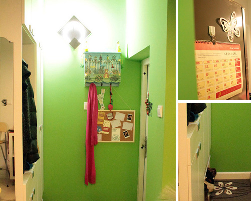 居家的色彩如意度,是根據(jù)每個(gè)人對于家不同的概念來定。這一個(gè)小戶型從色彩定位到設(shè)計(jì)走向是由MM自己動(dòng)手操作的,溫馨舒適,即使是小戶型依然非常出彩。我們從綠色玄關(guān)看起,玄關(guān)在入門的第一刻就充分吸引客人眼球,象征生命力的嫩綠透露主人是個(gè)充滿生機(jī)活力的人,色彩的生命力也可以體現(xiàn)主人的情操呢。