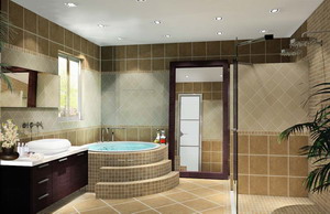 醇厚濃郁的咖啡色受到越來越多上層人士的青睞,用博洛尼深咖啡色瓷磚作為主色裝飾墻面和地面既顯檔次又便于收拾打理。在長方形的衛(wèi)浴空間中,淺色瓷磚大面積的鋪貼墻面,U型的咖啡瓷磚當(dāng)之無愧成為浴室中最具創(chuàng)意的設(shè)計(jì),墻面與地面聯(lián)合貫穿,將衛(wèi)浴分隔為兩個部分。