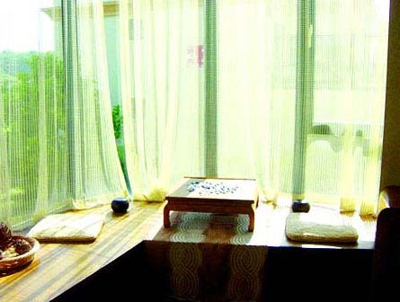 臥室如果有飄窗也可做成茶室,放兩個(gè)圓形坐墊,一個(gè)日式的小茶幾,兩人對(duì)坐品香茗,生活妙不可言。