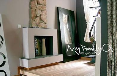 自己設計的壁爐,旁邊的落地鏡是宜家買的800元,有點心痛