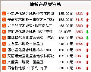 可以很直觀地看到,排名前十位的品牌變動不大。通過兩組不同時間的數(shù)據(jù),可以看出,跌出前十位的僅有瑞嘉和久盛,取而代之的則是升達(dá)和生活家。其它品牌則只是交換了名次,其關(guān)注度之間的差別并不大,僅有圣象遙遙領(lǐng)先。
