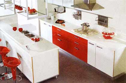 “更加合理地利用空間,營造出一種‘喜歡做飯’的感覺”對于廚房主人來說最合理的布局,也往往最能體現(xiàn)其個(gè)性,滿足其時(shí)尚需求。首先要考慮烹飪作業(yè)的方面:取用廚具要簡單方便,物品收納要有條理,還要有專業(yè)的動線規(guī)劃。依據(jù)不同的地形條件可以選擇一字型,L型,U型或島型的整體布局。而主人的習(xí)慣和品位也極大地影響最終成形的設(shè)計(jì)。