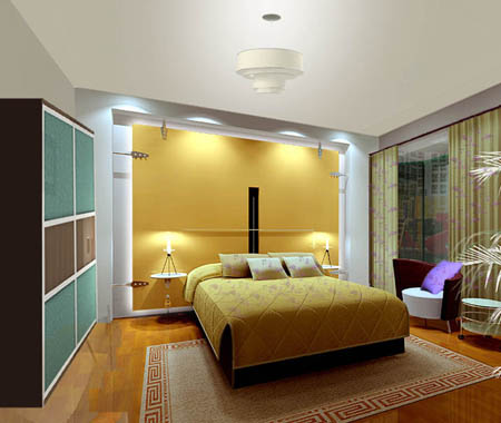 2、臥室的燈光要溫馨,臥室的光源:一是自然光,二是人工采光。自然光主要以太陽為光源,人工采光即是使用燈具照明。通常臥室的照明包括普通照明、局部照明和裝飾照明三種類型。普通照明供休息起居之用,而梳妝、更衣、床頭閱讀等活動,則需要局部的照明,而裝飾照明以情調為目的。臥室中的普通照明需注意的是燈光要柔和、溫馨、有變化,避免采用室內中央的惟一大燈,光線勿太強或過白,因為這種燈光常使臥室內顯得呆板沒有生氣。如果選用天花板吊燈時,則必須選用有暖色光度的燈具,并配以適當?shù)臒粽郑駝t懸掛笨重的燈具在天花板上,光線投射不佳,室內氣氛大打折扣。臥室的照明燈具類型有:嵌頂燈、吸頂燈、壁燈及活動燈具。照明還需具有彈性,溫馨且輕松。不論是更衣、梳妝、閱讀等活動,均需有適宜的光線搭配,透過完美有效的照明設計令室內空間個性得以完整表達。
