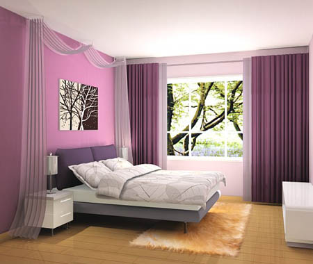 3、臥室的窗簾最好有兩層,外面的一層選擇比較厚的麻棉布料,用來遮擋光線、灰塵和噪音,營造好的休憩環(huán)境,里面一層可用薄紗、蕾絲等透明或半透明的料子,主要用來營造浪漫的情調,顏色當然要和房間整體的格調相match啦!最好能根據(jù)季節(jié)的不同調換窗簾的顏色和質地。