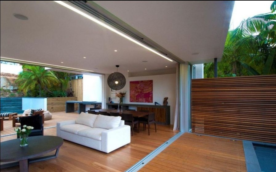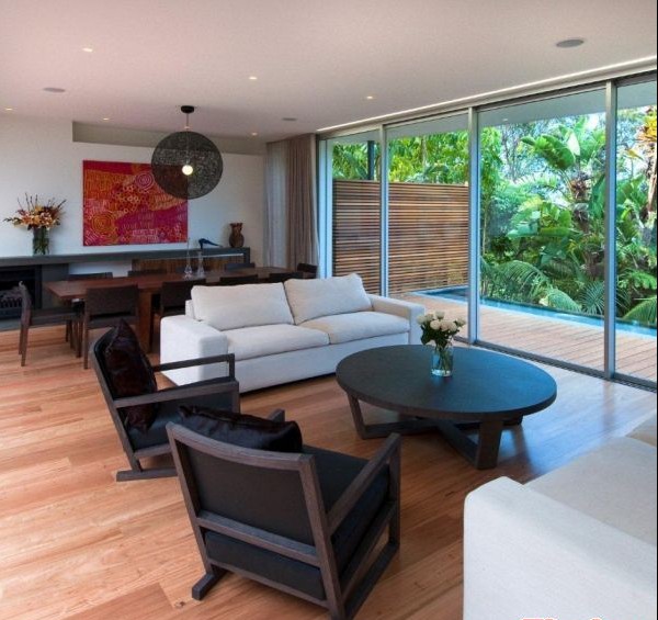 小客廳里巨大的玻璃推拉門讓房間與外界沒有隔閡。