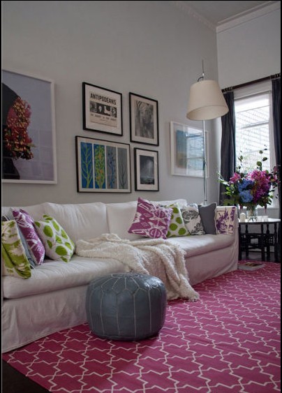 白色是永不落幕的時尚元素,小客廳里白色的加入調(diào)和了大塊粉紅**塊帶來的壓抑感,再加入乳白色的布藝沙發(fā),進(jìn)一步調(diào)和了大塊的粉紅**塊,保持室內(nèi)空間的明亮。而沙發(fā)上春天氣息花色的花紋抱枕,又為這個家居增添了田園的春意。