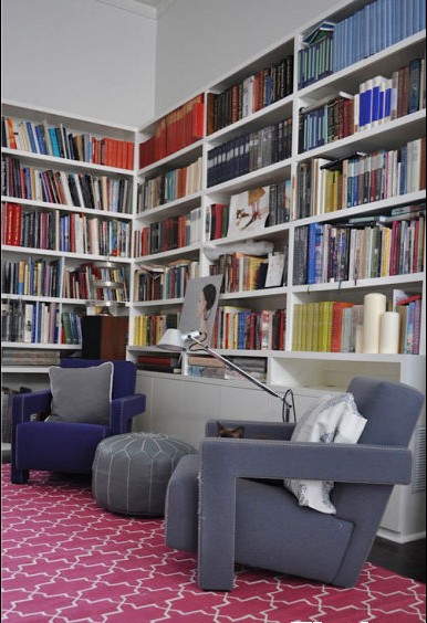 二樓又重現(xiàn)了粉色浪漫,在這個滿是書香氣息的書房里,沿用一樓的粉紅色地毯和單人沙發(fā),保持室內(nèi)設(shè)計主題的一致性。L型設(shè)計的書柜,貼合墻壁,直接到房頂,能更好地利用墻角的位置,又能更好的利用收納空間