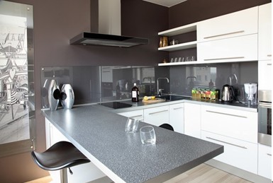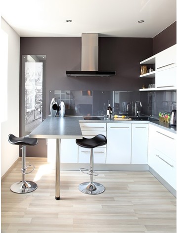 吧臺的運用很是巧妙,即增加了廚房間的操作臺面嗎,也可以在吧臺上小情調(diào)一下,很是巧妙。墻面防水臺用來玻璃來代替大理石,不管是美觀上還是實用功能上都是值得一贊的。