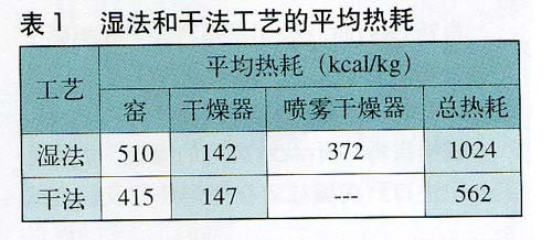 為了對這兩種生產(chǎn)工藝的生產(chǎn)成本作一個簡單的比較,表1對比了兩種工藝的熱耗。從表中可以看出,“巴西干法”工藝的平均熱耗明顯較低.而且區(qū)別最顯著的是窯的熱耗,說明“巴西干法”工藝之所以經(jīng)濟,并不僅僅因為噴霧干燥器的能耗問題。