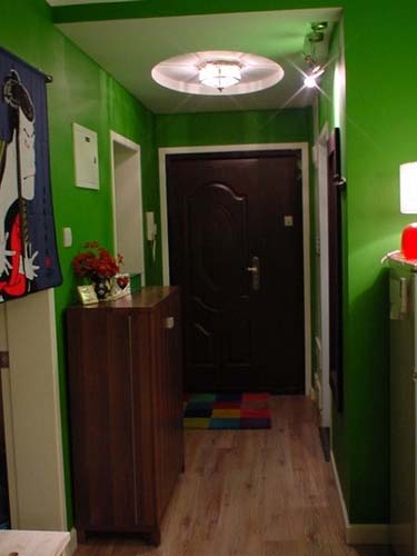 望向大門,4年前相片,現(xiàn)在并無太大改變,一樣的彩色進(jìn)門毯,一樣的鞋柜,一樣的門廳燈,一樣的廚房門簾,不一樣的冰箱。