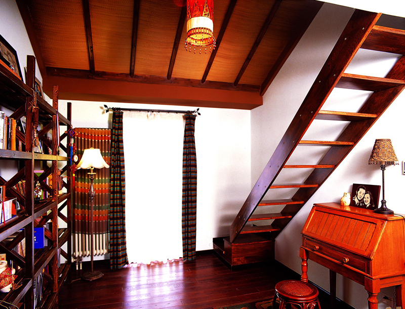 閣樓里的書房,安靜實用。東南亞風格里最不少的就是原木材質(zhì)的家具,它原始風情亦是如此。