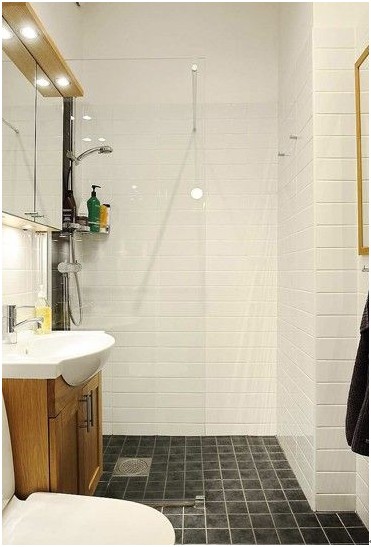 光線明亮能給人很好的舒適感,潔白的洗漱池線條簡單,空間利用充分。深灰色地磚則增添了整個空間的厚重感。