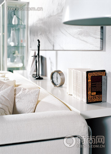 比如沙發(fā),可以選擇只有坐墊和靠背,而無扶手的款式,看上去會輕巧得多;再如電視柜的選用,其實一塊挑板擺放必要的音響就足矣,從立面看是線的造型,簡潔明快;柜子盡量選擇有柜門的,這樣在視覺上更完整。