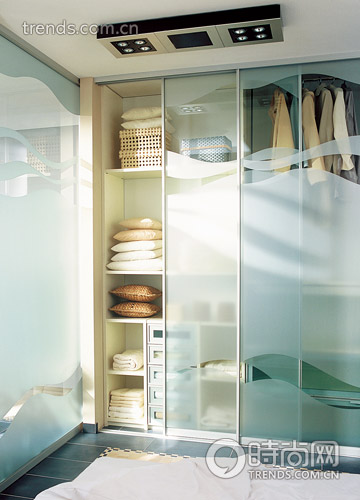 在小空間的墻面要盡量留白,因為為了保障收納空間,房間中已經(jīng)有很多高柜,如果在空余的墻面再掛些飾品或照片,就會在視覺上過于擁擠。如果覺得墻面缺乏裝飾而缺少情趣,可以選擇房間內(nèi)主色調(diào)中的一個色彩的飾品或裝飾畫,一定要在色調(diào)上不要太出格,不要因為更多色彩的加入而讓空間雜亂。適當(dāng)?shù)亟档惋椘返臄[放位置,讓它們處于人體站立時視線的水平位置之下,既能豐富空間情調(diào),又能減少視覺障礙。