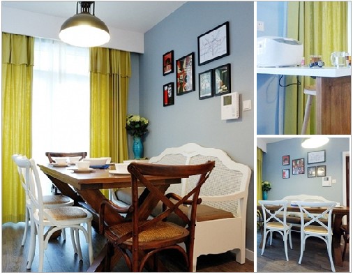餐廳里兩種色調的餐桌椅,田園風中略帶現(xiàn)代感。桌面上清新動人的半透明海白色玻璃餐具,是整個空間不可缺少的裝飾亮點,用它們來承載關于地中海的浪漫情懷。