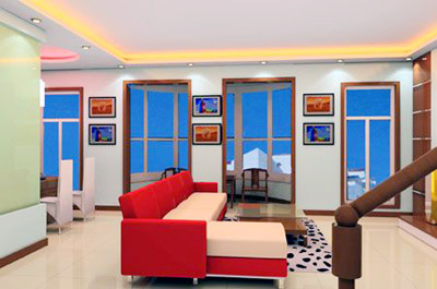 第三是盡可能地增大活動空間。廳內(nèi)擺放現(xiàn)實家具會產(chǎn)生一些死角,并破壞色調(diào)整體協(xié)調(diào)。解決 這一矛盾并不難,應根據(jù)客廳的具體情況,設(shè)計出合適的家具,靠墻展示柜及電視柜也度身定做,節(jié) 約每一寸空間,這在視覺上保持了清爽的感覺,自然顯得光亮。另外,若客廳留有暖氣位置,可依墻 設(shè)計一排展示柜,即可充分利用死角,保持統(tǒng)一的基調(diào),還為展示個人文化品位打開了一個窗口。同 時要注意,在地面處理上,要盡量使用淺色材料,避免深色吃光,也能增進客廳內(nèi)的光亮度。
