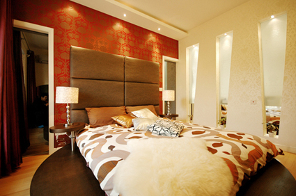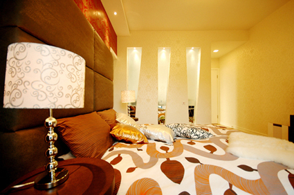 主臥里的背景墻,是時(shí)下很多人都特別喜愛的軟包,脫離了硬邦邦的水泥墻面,軟包更有時(shí)尚感,也更具舒適度。這里需要重點(diǎn)看下左邊的墻面,它的獨(dú)物設(shè)計(jì)理念不是偶然的,雖說風(fēng)水學(xué)上講,床最好不要對(duì)著鏡子,但是這樣的時(shí)尚感十足的裝飾,哪個(gè)年輕人不愛呢。