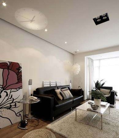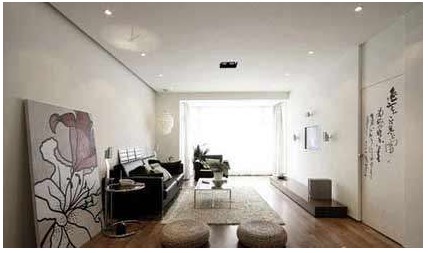 少就是多的簡(jiǎn)約布局設(shè)計(jì),沙發(fā)后面墻體留白,左右兩側(cè)的藝術(shù)畫、吊燈與書房門上的書法交替,傳遞出空間的層次關(guān)系和意象的壓縮。